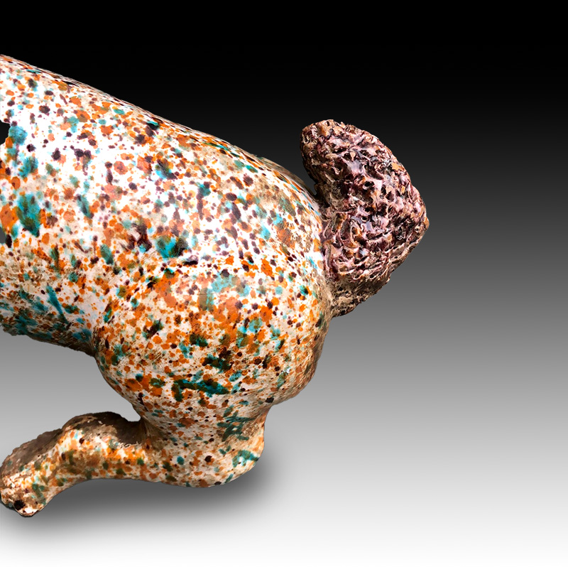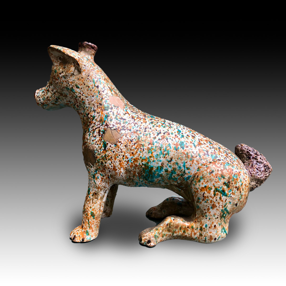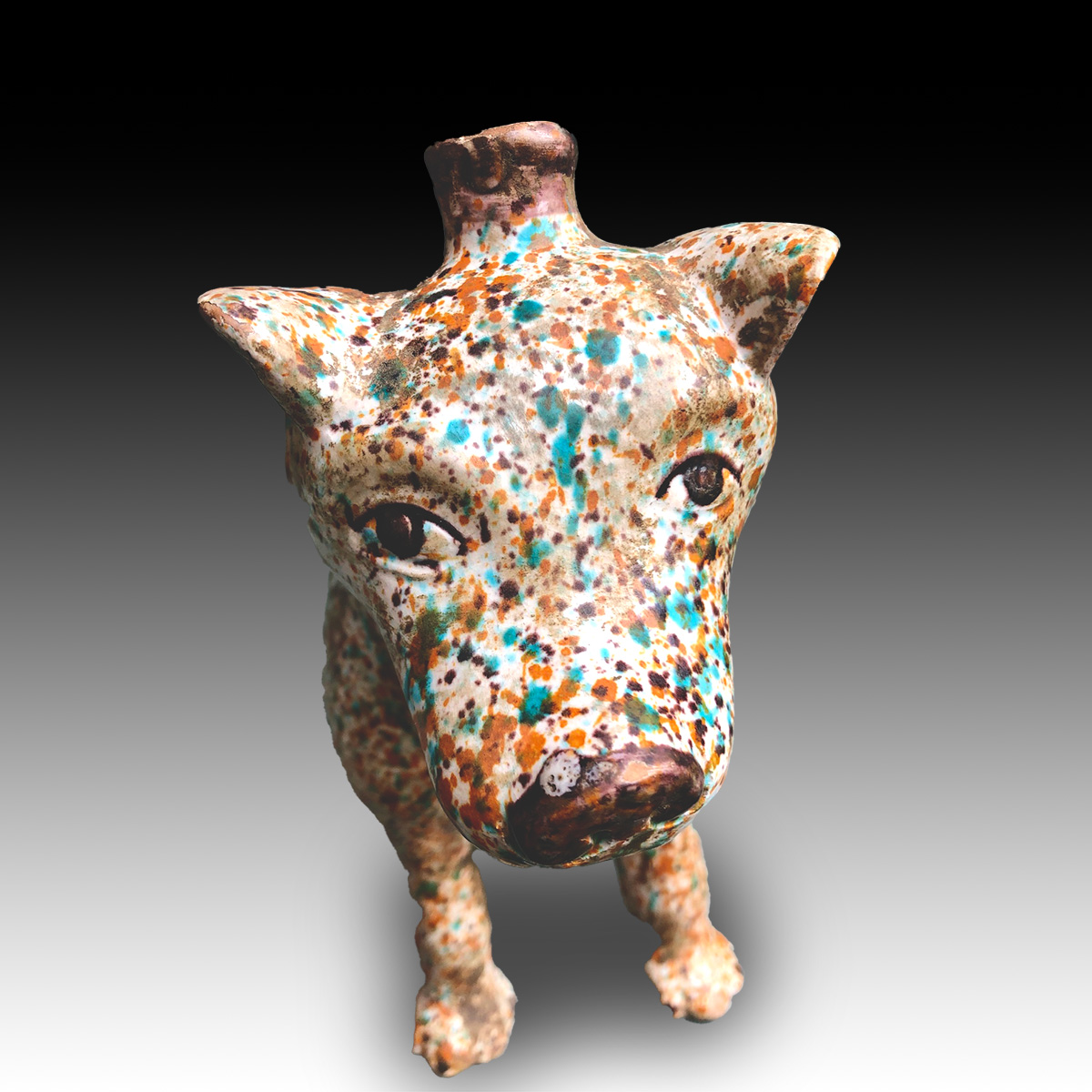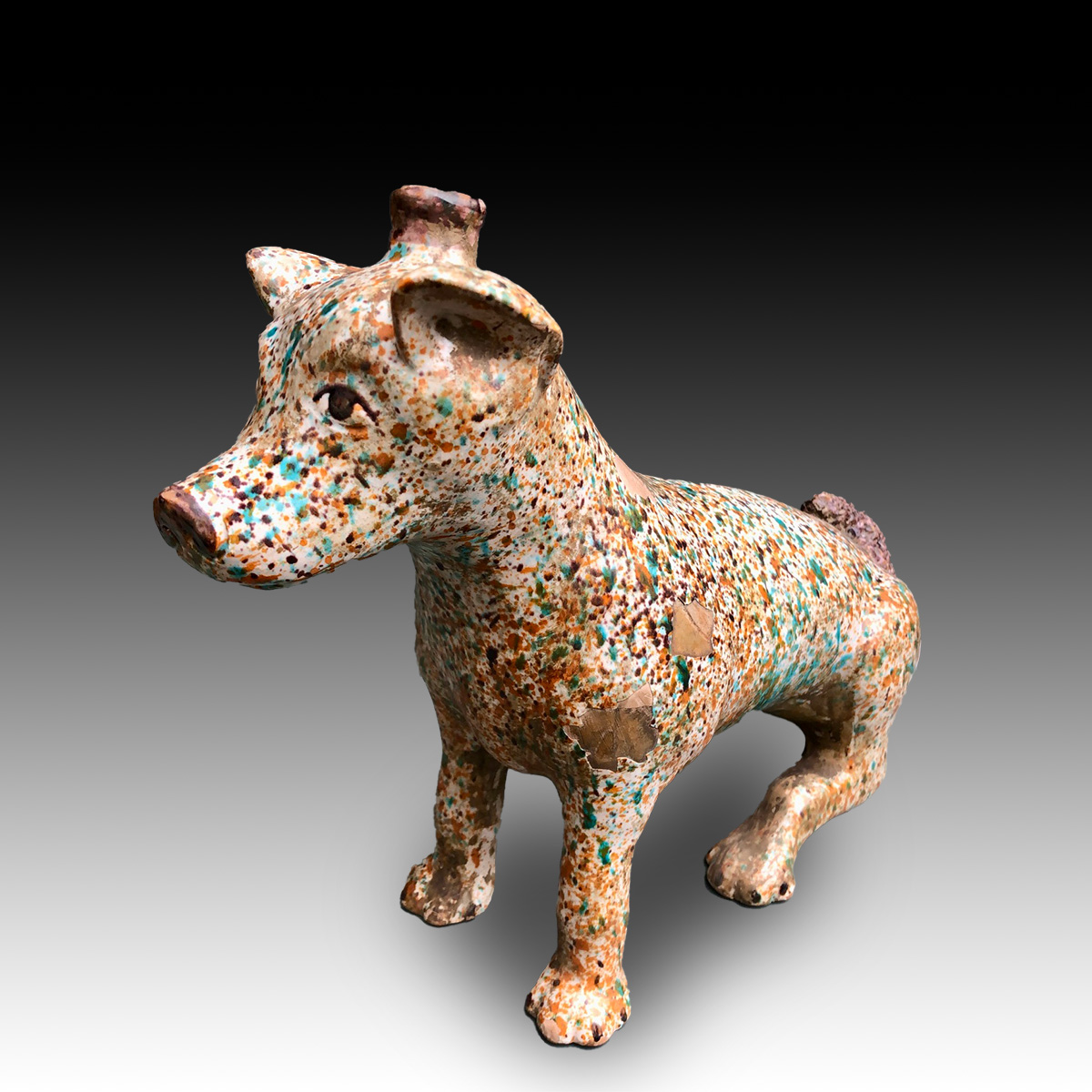 Vessel in the form of a Colima dog. Majolica, Mexico. Date 19th century or earlier.